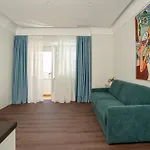 A balcony and a dressing area are all fitted with a TV set, as well as air conditioning, ensuring guests' comfort. The apartment is also furnished with a sofa set and a work desk. Beds fitted with hypo-allergenic pillows are at guests' disposal. Offering a bidet, a separate toilet, and a shower, a bathroom comes with a hair dryer and a shower cap.
